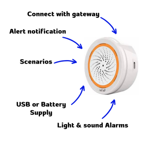 Combining a window door sensor, PIR sensor, and smart socket with a gateway hub creates an efficient home security system. The sensors detect movement and entry, while the siren alarm provides an instant alert. The gateway hub connects everything, making monitoring and control through an app seamless and convenient.